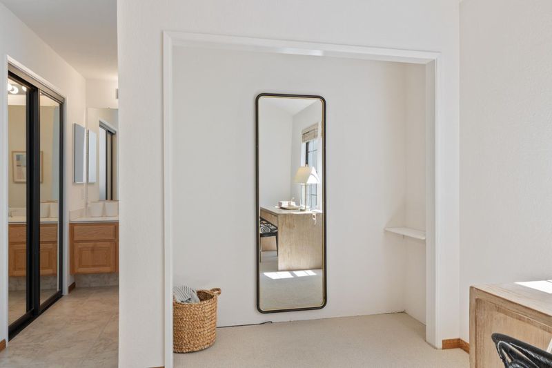 Soaring ceilings and expansive windows fill the space with natural light, highlighting a thoughtful layout with two spacious bedroom suites, each featuring en-suite baths and ample closets. The inviting living area with gas fireplace and powder room flows seamlessly into a light-filled dining space and all electric modern kitchen with stainless steel appliances and abundant cabinetry. Interior features include dual-pane windows, recessed lighting, wood flooring on the main level and staircases, brand-new bedroom carpets, forced air heat, central A/C, a separate laundry room, and an attached two-car garage. Sliding glass doors from living and dining areas lead to a private brick patio with mature plantings and lots of space to entertain. The HOA provides beautifully maintained grounds along with pool and spa amenities, offering a low-maintenance lifestyle. Ideally located minutes from Santana Row, Westfield Valley Fair, and major employers like Apple Inc., this is turnkey living in one of Santa Claras most desirable communities.