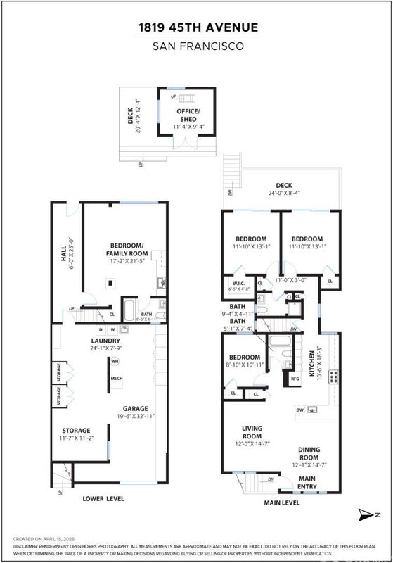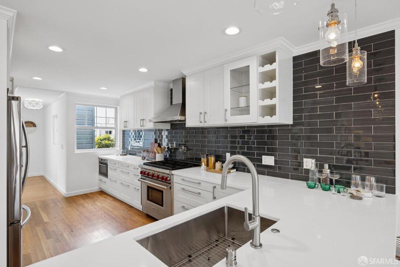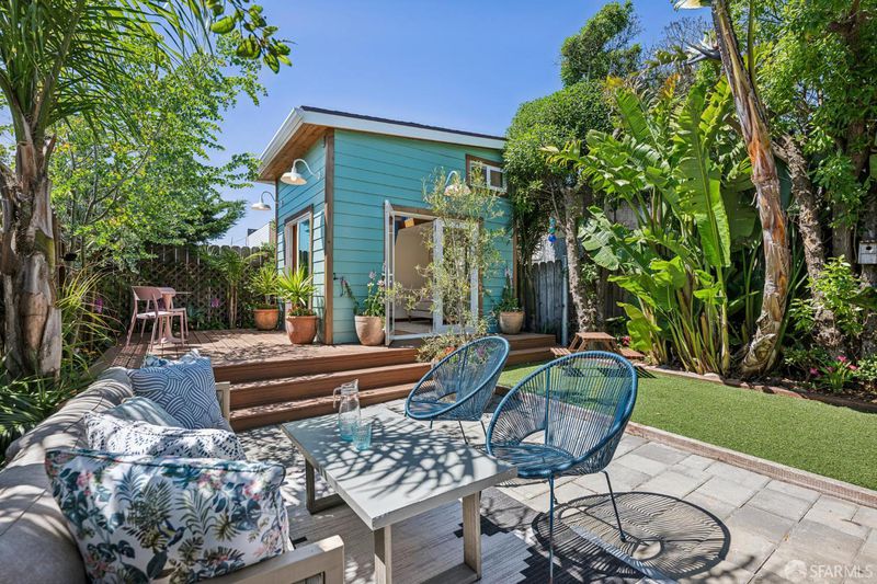 Live the Outer Sunset lifestyle in this stylishly remodeled residence just blocks from the beach. This coastal home features an open floor plan with a gorgeous kitchen equipped with quartz countertops, glass tile backsplash, premier stainless-steel appliances, and an overhang for informal dining. The kitchen opens to the dining area and a bright, inviting living room. The main level offers 3 bedrooms and 2 bathrooms, with two rear bedrooms featuring sliding glass doors to a large walk-out deck with ocean outlooks, leading down to a spacious garden oasis, professionally designed with paved and turf areas for seating and recreation, surrounded by lush landscaping. At the back of the garden is a finished detached office or she-shed, ideal for a home office or occasional guests. The lower level includes a large bonus room suitable as a 4th bedroom or family room, complete with a wet bar and an ensuite bath with shower over tub. The garage provides laundry, storage, a gym area, playroom or office area, and parking for 2 cars, plus 2 spots on the front parking pad lined with palm trees. Wonderful expansion potential to create add'l finished space in the garage (buyer to investigate). Excellent location one block from Gus' Market, 5 blocks from the beach, nearby schools including Sunset Elementary and St. Ignatius, and around the corner from shops and restaurants along Noriega Street. Do not use Showing Time.