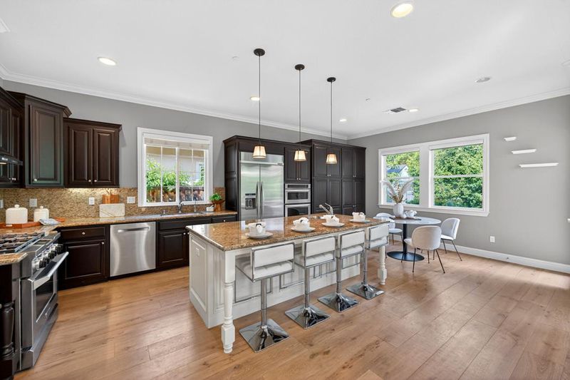 - 220 Volt Outlet, Countertop - Granite, Dishwasher, Island with Sink, Cooktop - Gas, Freezer, Garbage Disposal, Hood Over Range, Hookups - Ice Maker, Microwave, Oven - Double, Exhaust Fan, Warming Drawer, Refrigerator, Oven - Electric