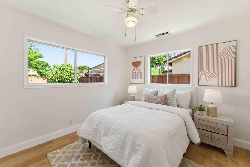 This beautiful home has been lovingly prepared for the market. Fresh Paint, inside and out. Gorgeous large white kitchen with quartz countertops, brand new gas range and a dining area that shares space with the kitchen and living room. New wide plank laminate floors installed throughout giving it a very modern look. Fireplace add warmth and focal point to the living room. Generous windows offer abundant natural light. There is a covered patio to enjoy the outdoors with protection from sun and rain. There is even a raised bed garden area for you to start your own 'farm to table' experience.