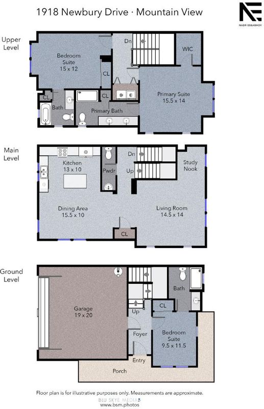 Sunlit end-unit townhome in the heart of Silicon Valley. This beautifully designed 3 bedroom, 3.5 bathroom home offers a flexible and convenient layout ideal for modern living. The first floor features a versatile private bedroom suite, ideal for guests or a home office. The second level showcases an open-concept living space with a spacious living room, dining area, and a well-appointed kitchen with center island, along with a convenient half bath. Upstairs, the primary suite includes a walk-in closet, accompanied by an additional en-suite bedroom. Enjoy abundant natural light throughout, in-unit laundry, an attached 2-car garage, A/C ready, and the added privacy of an end unit. Ideally located just minutes from downtown Mountain View dining and shopping, with easy access to major commute routes. Two blocks to a bike bridge connecting to Google, Permanente Creek Trail, and Shoreline for outdoor recreation. A perfect blend of comfort, convenience, and location. Buyer's to verify schools