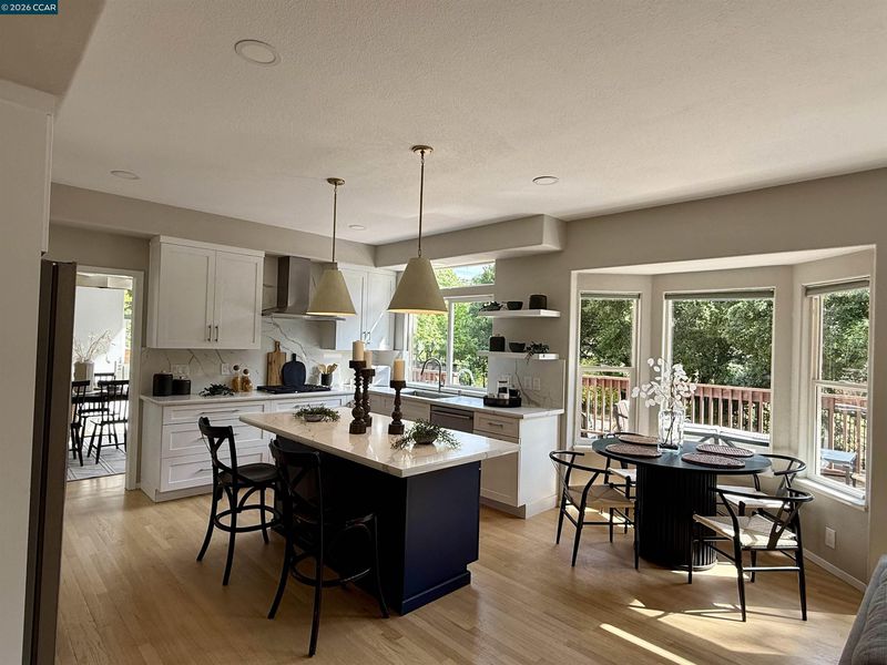 Green & Serene: a location unlike any other. Tucked away at the end of a private lane, on a flat .39 acre lot sits this breathtaking modern home constructed in 1996. The Spanish style exterior delights with a clay tile roof, gorgeous front door and verdant landscape. Soaring 20+ foot ceilings greet you at the front door and a sunny, open layout promises great spaces for daily life and definitely for entertaining. Two living spaces and a formal dining area with enormous picture windows offer views of the surrounding trees and nature. The sensational, sprawling (newer) kitchen will bring you pure joy: featuring white cabinetry, stainless appliances, open shelving, Quartz slab countertops and massive deep blue island with seating for 3-4. The primary suite is a haven to dream of retreating to each day. Double doors welcome you in, leading to a spacious walk-in closet with a custom organization system, a beautifully updated bath featuring a stall shower and soaking tub, and a deck overlooking the private backyard. One bedroom plus a full bathroom downstairs ensures that your guest room/ working from home/ older child situation works here. Hardwood floors grace the first floor, and brand new high end lighting from Walnut Creek Lighting Company illuminate the first floor beautifully. The brilliant window placement offers natural light throughout the day, while still offering privacy from the neighboring home. A spacious three car garage ensures plenty of storage, place to park, or the potential gym setup that you've been hoping for. The backyard is an oasis: beautifully surrounded by greenery, with a great lawn area, spot for a play structure or gazebo and a rear deck ideal for outdoor dining. There is plenty of room to put in a pool, outdoor kitchen, or fire pit: it is wonderful as it is, but also offers so much space for you to create your dream backyard. Just 1.1 mile from the fabulous Encina Grande Shopping Center and .4 of a mile from Northgate High School: you have the proximity to it all, while feeling like you're in the country and on vacation at once. If you're an outdoors person, rejoice! This home is just 1.7 miles to the breathtaking Castle Rock Recreation Area + 1.9 miles to Borges Ranch: both offering some of the best hiking trails in the East Bay!