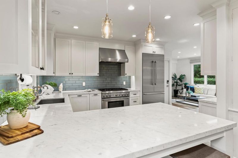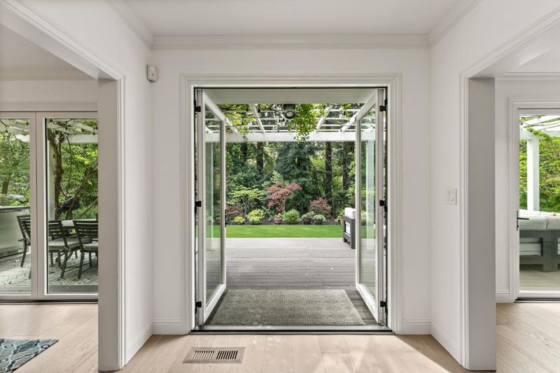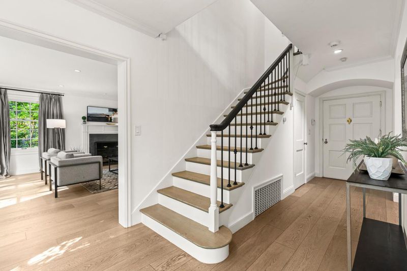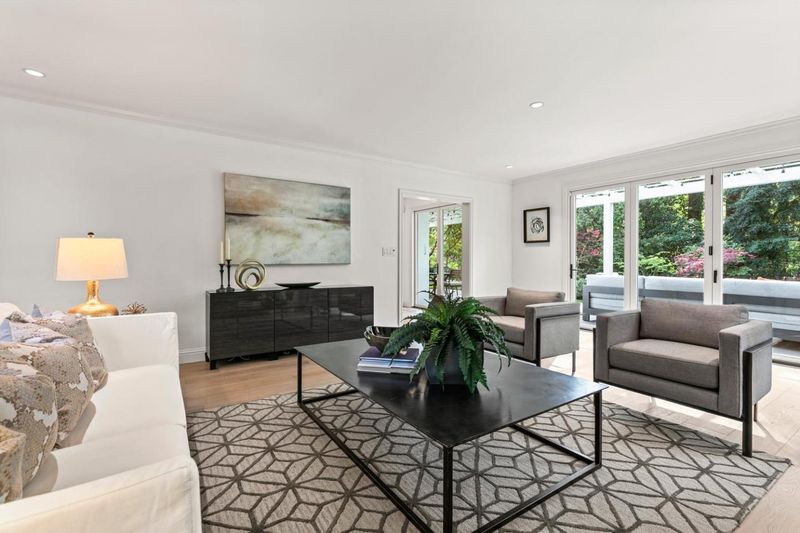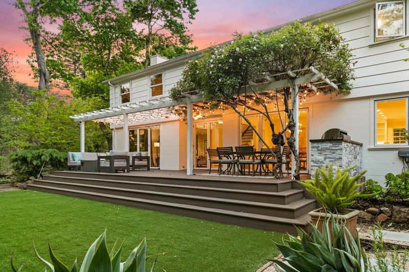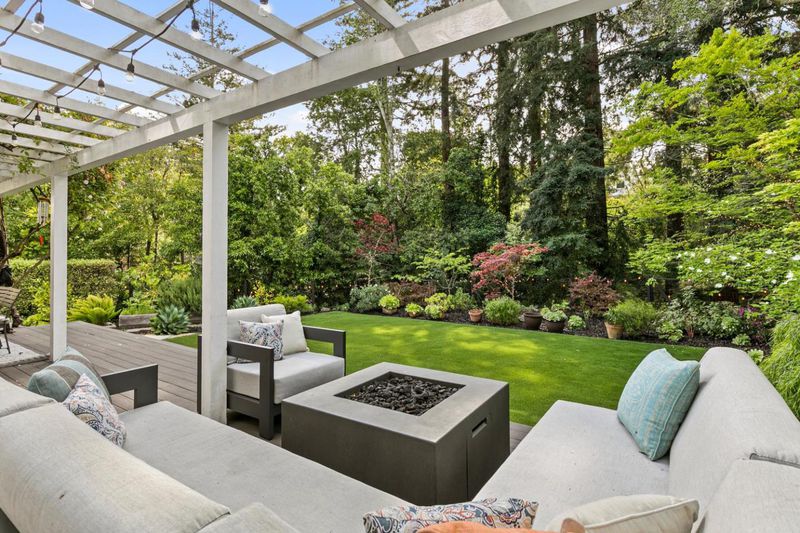 Elegant transitional Colonial in sought-after lower Hillsborough, set on a private, tree-lined lot. Light-filled interiors with garden views throughout. Kitchen with Carrera marble and Thermador appliances flows into gracious, defined living and dining spaces. La Cantina folding doors open to a resort-style backyard with built-in BBQ, firepit, and multiple entertaining areas. Renovated in 2020 with French oak floors, all new Marvin windows, and updated finishes throughout. Four bedrooms upstairs, including two spacious primary suites. Private, serene setting just moments from North School, Crocker Middle School, and Burlingame Avenues shops and dining