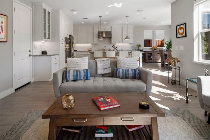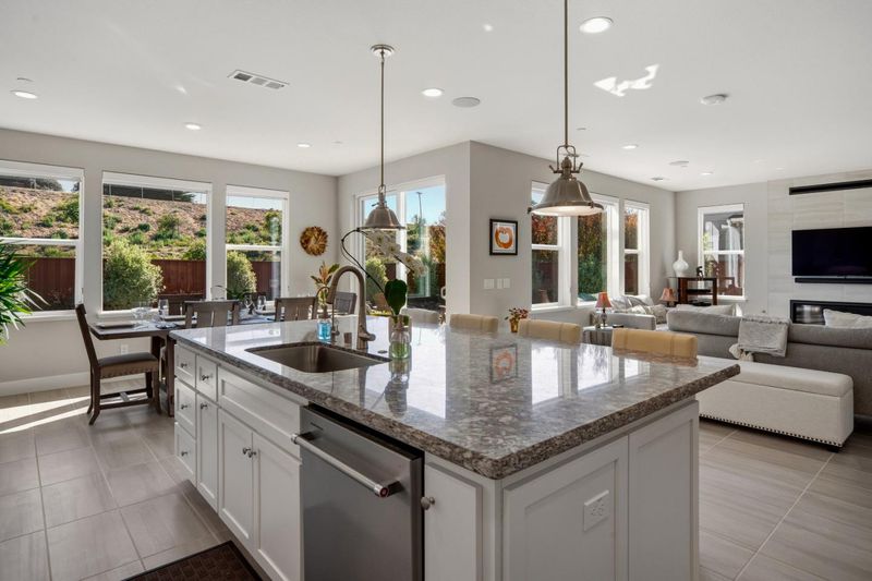 If your desire is to purchase a residence at The Dunes with generous, private views, this home will not disappoint. From the moment you step inside you will be captivated by the unparalleled views from the sunny back patio with firepit and stone slab pathway. The property is in a quiet, rarely available setting at The Dunes with Hilltop Park and its adjoining puppy park nearby. The home is elegantly finished. A statement chandelier in the soaring entryway serves as starting point for further refinements in this gracious home. The kitchen is a dream with upgraded round-edge granite counter tops, white cabinets with subway tile backsplash, vintage industrial pendants, reverse osmosis water, and Kitchen Aid appliances. There is a linear gas fireplace with blower, and a surround sound system downstairs. Upstairs features include a stair nook with built-in desk, glass barn door at the loft / den, upgraded carpeting, upgraded tile on the primary shower floor, primary mirrored closet, and upper laundry cabinets. The home has upgraded interior paint, window coverings throughout, full-house Rain Soft water, EV charger, backyard irrigation, and Sunrun solar (leased). From this home you will enjoy a 15-minute walk to Fort Ord Dunes State Park.