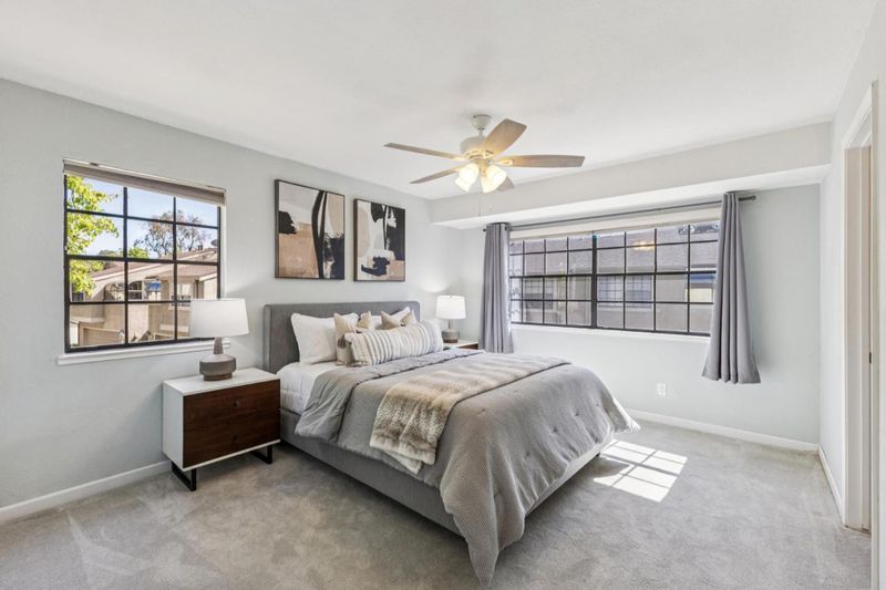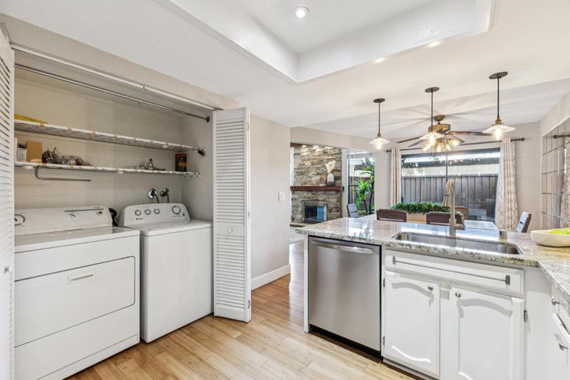Welcome to 5319 Port Sailwood in the vibrant city of Newark. Well-maintained 3-bed, 2.5-bath home offers approx 1,647 sq ft of living space with a private patio area and pre-wired Spa connection. Home features a spacious family room with bamboo flooring, blinds, and modern surround fireplace. Kitchen includes Frigidaire S/S appliances, a large sink, tray ceiling with recessed lighting, and pendant lighting over the counter. Adjacent dining area includes a ceiling fan and access to a private tiled courtyard. Main level features a half bathroom with granite countertop, tile flooring, and a pocket door, plus a laundry closet with washer and dryer. Primary bedroom offers a ceiling fan, private balcony, and a bathroom with a tiled walk-in shower, double shower heads, and granite vanity. 2 additional bedrooms include ceiling fans, one offering a walk-in closet. The hall bathroom includes a granite vanity, tile flooring, and a shower over tub. Additional features include updated stair railings, storage under stairs, and fiber optic capability. Complex offers Pool, Conveniently located near Coyote Hills Regional Park, Silliman Activity Aquatic Center, and NewPark Mall, shopping, dining, and entertainment. Close proximity to major employers including Tesla, Meta, and Lucid Motors.