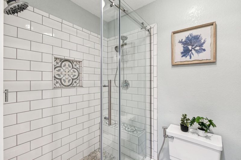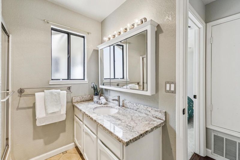 - Granite, Half on Ground Floor, Shower and Tub, Stall Shower, Tile, Updated Bath