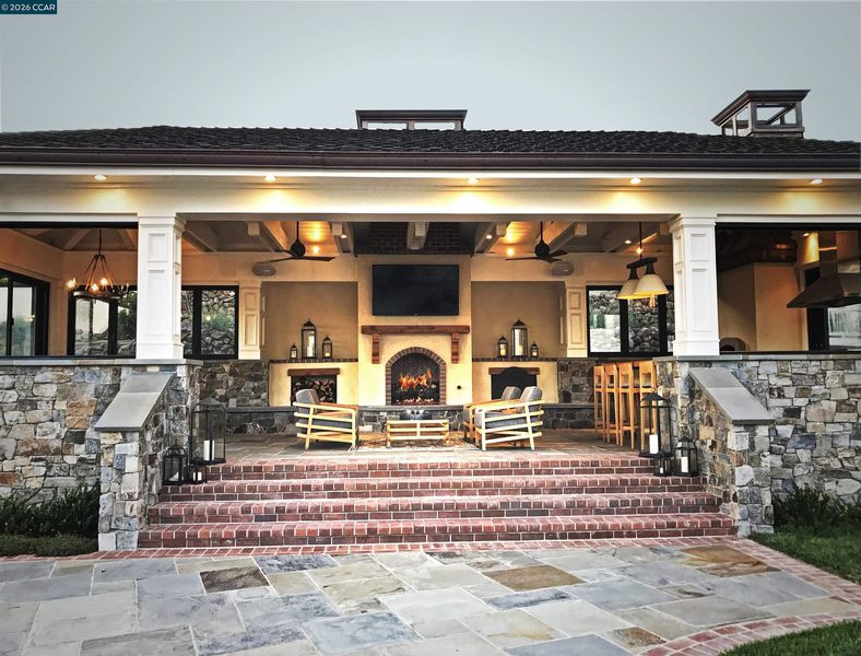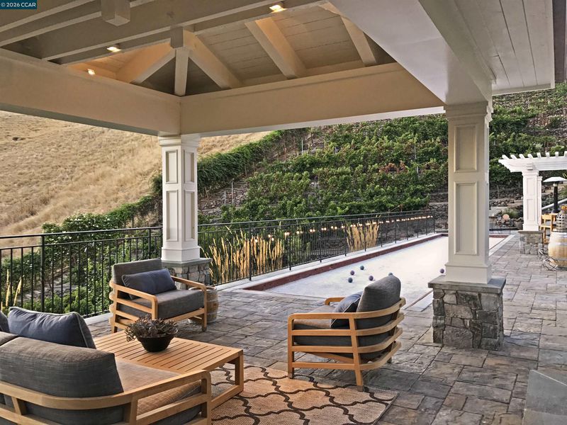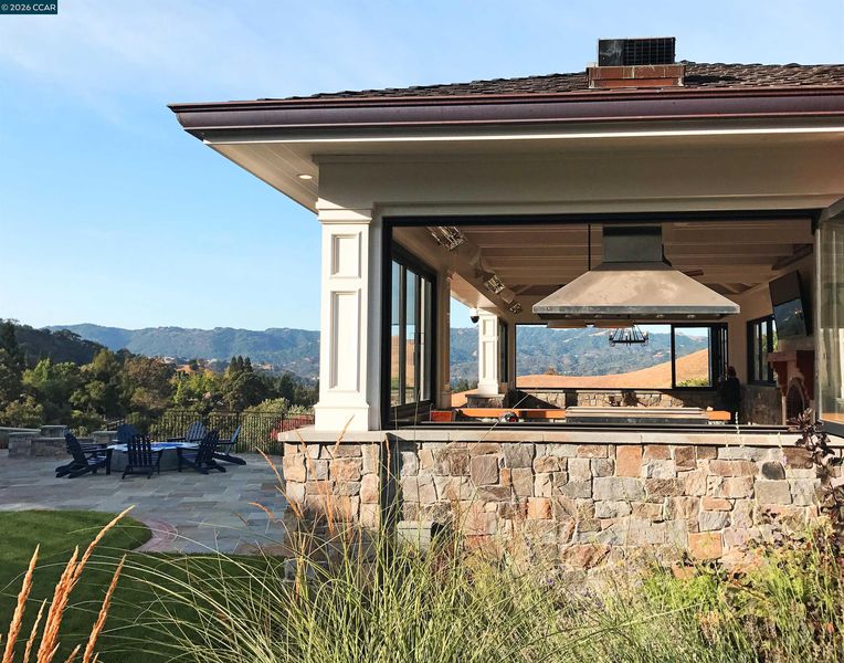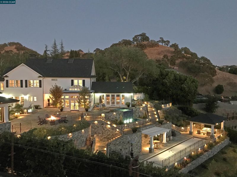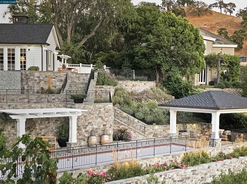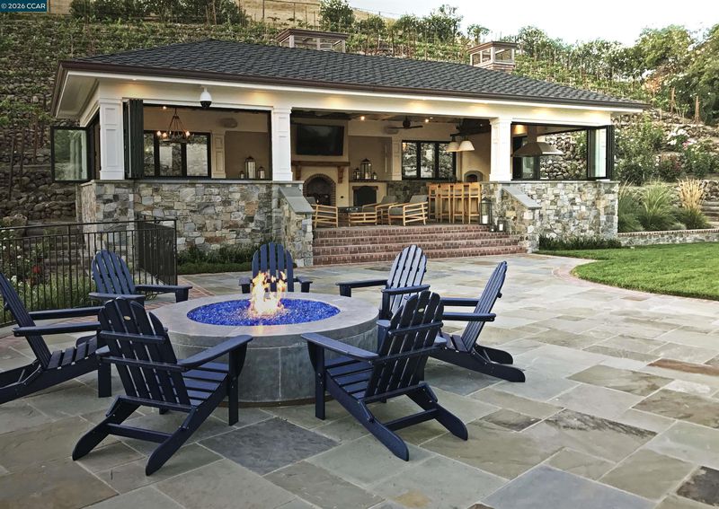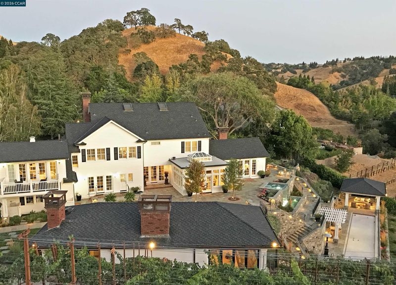 East Coast Elegance Meets California Vineyard Living! Tucked at the end of a private court in one of Alamo’s most coveted settings, this extraordinary estate captures the essence of timeless design, refined craftsmanship, and effortless living. Set on approximately 1.15 acres, the property offers an expansive, thoughtfully designed floor plan that balances grand-scale entertaining with intimate, everyday living. A series of beautifully appointed spaces ~ including a bonus room, media room, wine room and sunroom ~ provide flexibility, comfort, and privacy for every lifestyle. The 5th bedroom has been transformed into a custom office. Throughout the home, stately architecture is paired with designer finishes and bespoke details, creating a warm yet elevated aesthetic. The kitchen is a true showpiece, featuring a La Cornue range, multiple Sub-Zero refrigeration, marble countertops, bar with zinc countertop, walk-in pantry and a seamless connection to the home’s main living spaces ~ ideal for both casual and elegant gatherings. The grounds are nothing short of extraordinary. Following a multi-year, meticulously executed transformation, the outdoor experience rivals that of a private resort. At its heart, a spectacular pavilion anchors the backyard ~ complete with a full outdoor kitchen, wood-fired pizza oven, BBQ, fireplace, and integrated media ~ designed for incredible entertaining on any scale. Enjoy the bocce court with its own pavilion, blue waterfall wall, oversized spa, meditation garden with statue and birds nest at the top of the vineyard to take in the Mt. Diablo views. Surrounded by sweeping, unobstructed vistas of the Las Trampas ridge, rolling hills and open space, the property features a well-established vineyard with both Montepulciano and Cabernet Sauvignon vines, offering a rare opportunity to enjoy a true wine country lifestyle at home. This is a home where every detail has been considered, every space has purpose, and every moment is framed by beauty~ an exceptional offering that is welcoming and unforgettable. Peace of mind with a security gate to the neighborhood with guard on duty 24/7. Top rated schools. True sense of community on this lovely street. Yes, you can have it all!