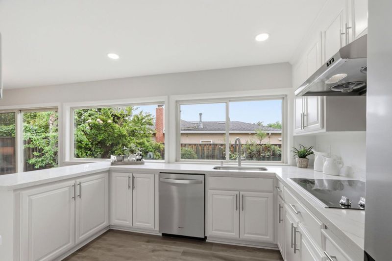 This exquisitely remodeled 5 bedroom home is situated in one of West San Jose's most desirable enclaves.It offers the ideal balance of functional space & contemporary updates within the prestigious Cupertino School District.The heart of the residence is a refreshed kitchen featuring NEW quartz counters, NEW recessed lighting, huge windows overlooking the rear yard, and NEW stainless steel appliances. Entertain in the grand living room w/ its massive picture window or retreat to the family room anchored by a classic brick gas fireplace. NEW Luxury Vinyl Plank flooring & fresh paint flow throughout the interior.The layout includes a versatile lower-level suite with a Murphy bed & adjacent full bath featuring a NEW light oak vanity. The primary sanctuary boasts a large walk-in closet & an updated bath with NEW double sinks. Year-round comfort is ensured by NEW central AC, a whole-house fan, & dual-paned windows. Outside, the newly refreshed rear yard features stone walkways & lawn area, complemented by a private gated front courtyard. Strategically located near the Apple campus & major commuting routes, this is a rare chance to own a move-in home in a premier neighborhood. Don't miss this incredible opportunity! (This residence has been professionally measured at 2,245 square feet).