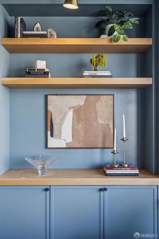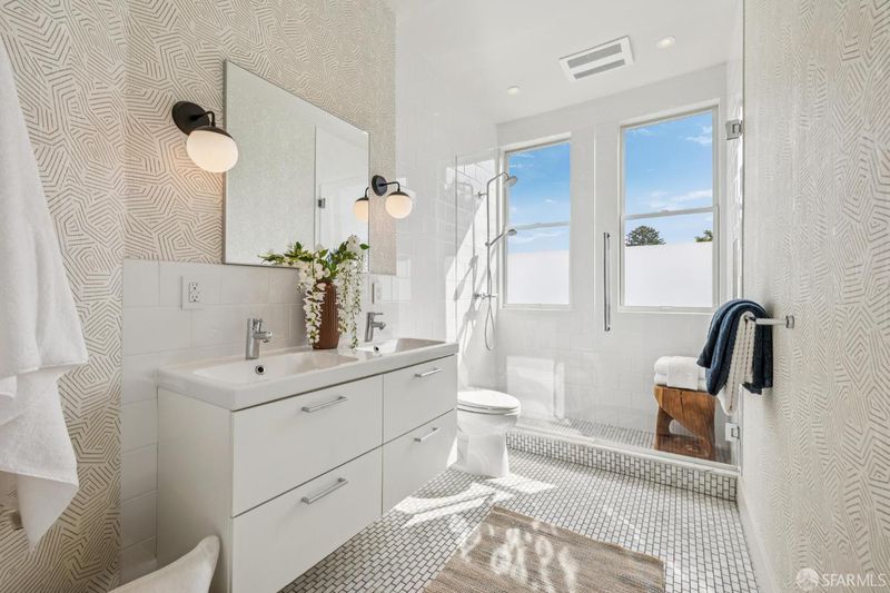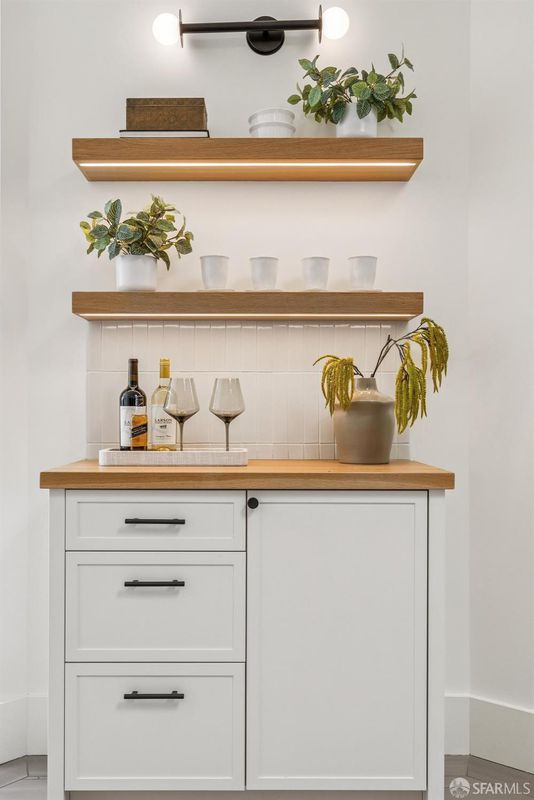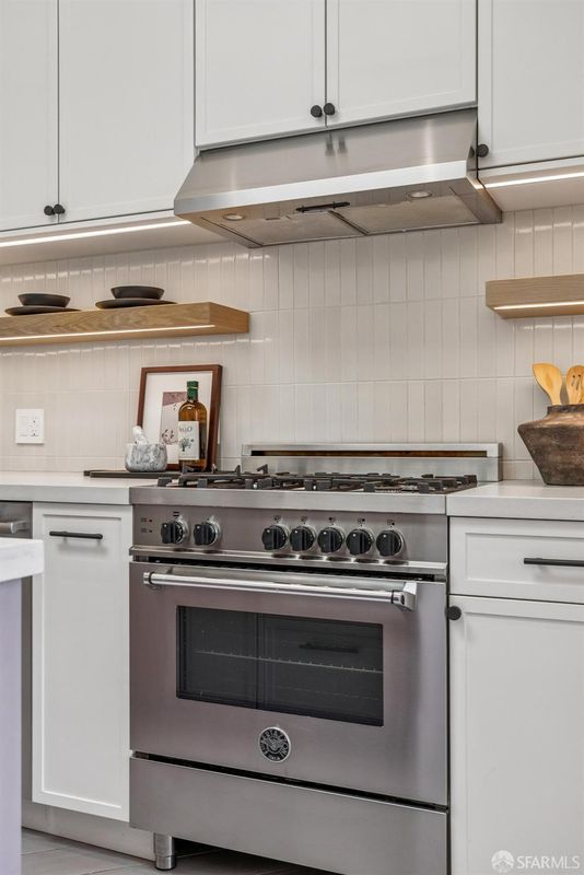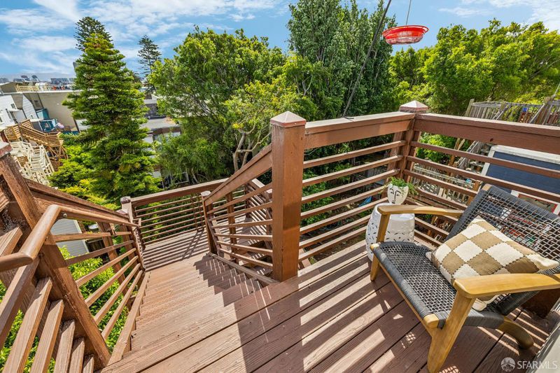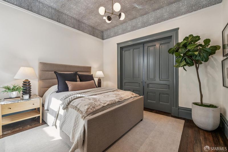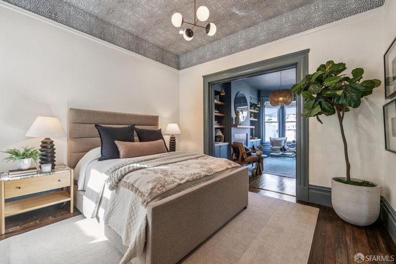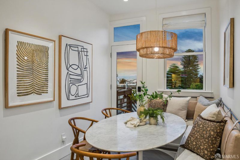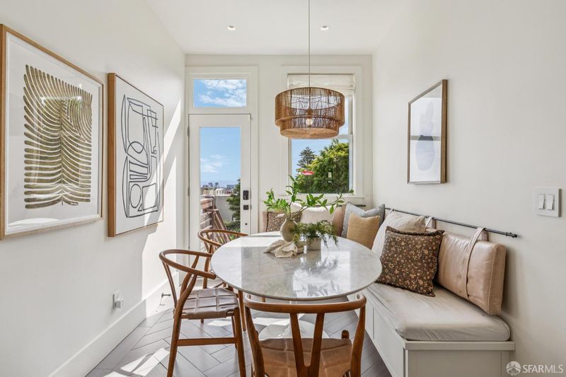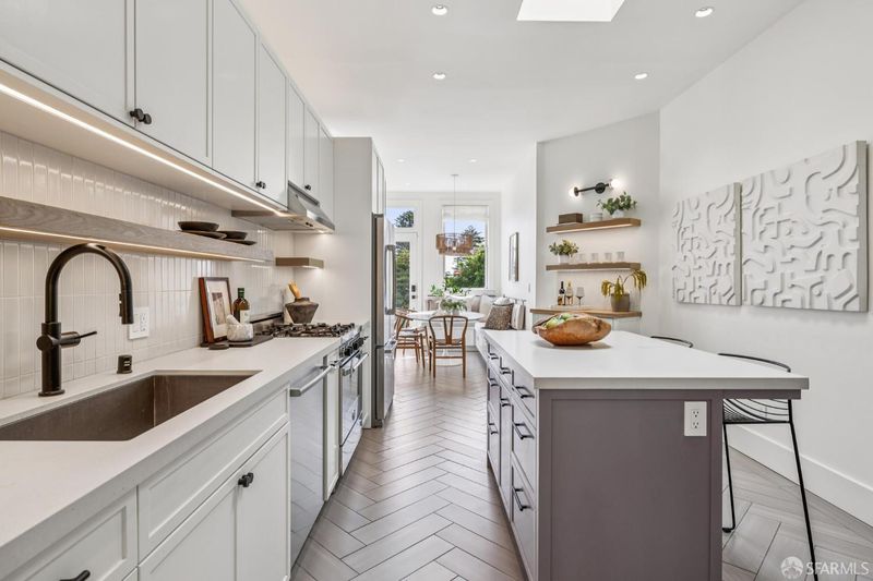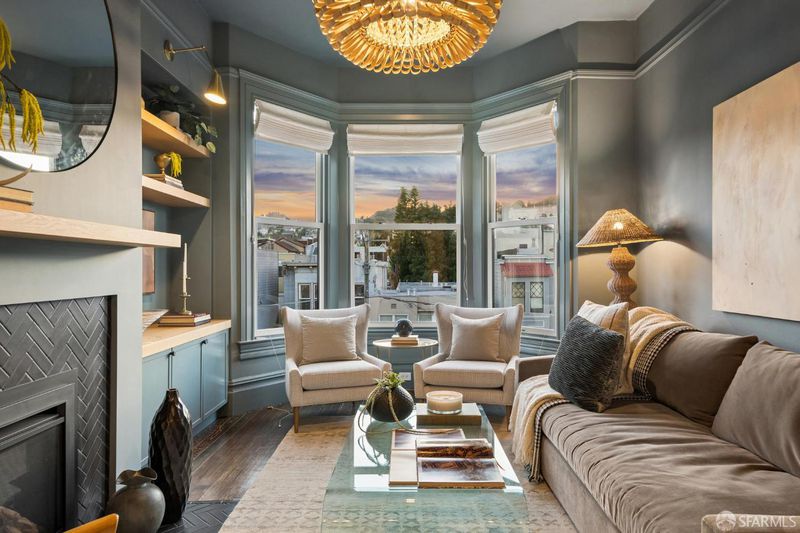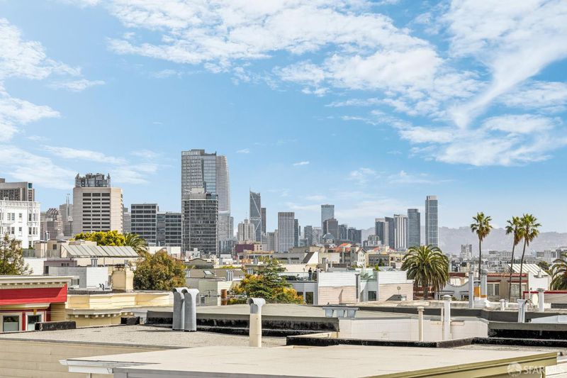 This chic 3-bedroom and 2-bath top-floor condo offers a rare blend of sophistication and tranquility. The stunning eat-in kitchen is illuminated with natural light from the skylight above the center island. Every chef's dream is realized with professional grade appliances, ample storage and workspace, even a separate area ideal as a coffee bar. The deck off of the kitchen overlooks the landscaped, shared garden and offers unobstructed downtown views. Imagine morning coffee or evening wine while enjoying the sheer beauty of San Francisco in front of you. At the front of the home is the dramatic formal living room with bay windows, and built-in bookshelves, which are both practical and stylish, flanking the gas fireplace. Double pocket doors open from the living room to the third bedroom, which could also serve as a comfortable flexible space, ideal for guests, library, or office. The glorious wall-papered ceiling elevates the already sophisticated design. The bright and comfortable front bedroom has classic bay windows and easy access to the beautifully remodeled hall bath. The spacious primary suite has built-in wardrobe and an en-suite bath with walk-in shower and double sinks. The bathroom also has a panoramic view of the downtown skyline. The thoughtful remodeling and upgrades resulted in a home of impeccable design and finishes. Practical upgrades include double paned windows throughout. In-unit laundry and a large garage with one-car deeded parking provide added convenience With easy access to public transportation, Dolores Park, and the innumerable neighborhood shops and restaurants, this tranquil retreat is an island of serenity in one of San Francisco most vibrant and thriving neighborhoods.
