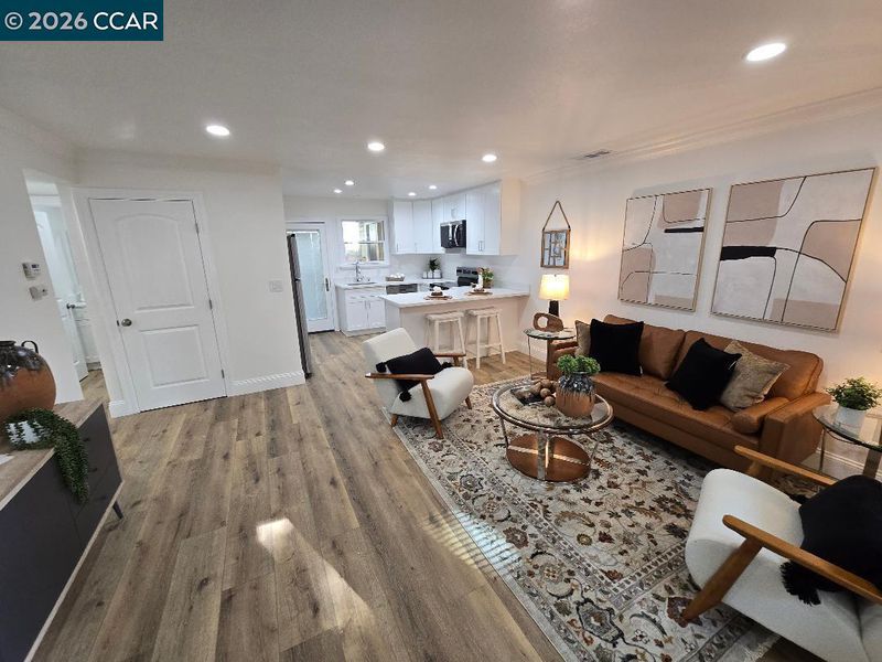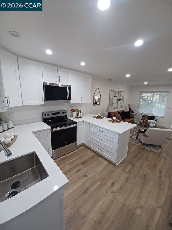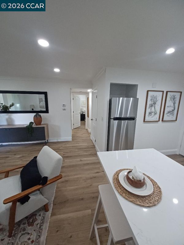 Stunning Newly Remodeled End Unit This beautifully updated 3-bed, 2-bath home offers modern comfort and style throughout. Step into a spacious, light-filled kitchen featuring gleaming white countertops, stainless steel appliances, and generous cabinetry — perfect for cooking and entertaining. Warm brown vinyl plank flooring flows seamlessly through the home, complemented by recessed lighting that creates a bright, inviting atmosphere. Both bathrooms have been thoughtfully refreshed with clean, contemporary finishes. Each bedroom includes mirror closet doors, adding both function and a sense of openness. Enjoy an expansive outdoor space ideal for relaxing, gardening, or hosting gatherings. As an end unit, this home provides added privacy and an extra sense of tranquility. A truly move-in-ready gem with every detail carefully considered.