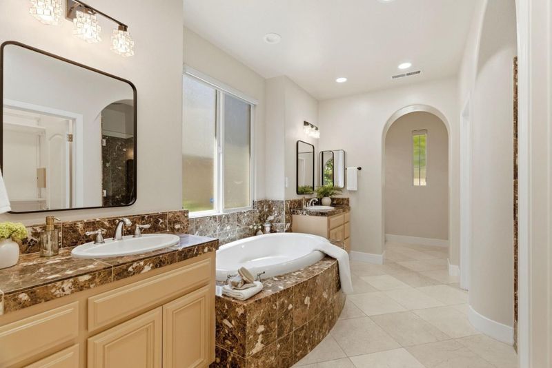 Shower over Tub - 1, Double Sinks, Full on Ground Floor, Half on Ground Floor, Primary - Oversized Tub, Primary - Stall Shower(s), Stall Shower - 2+, Primary - Tub with Jets