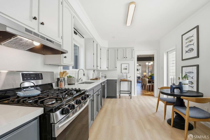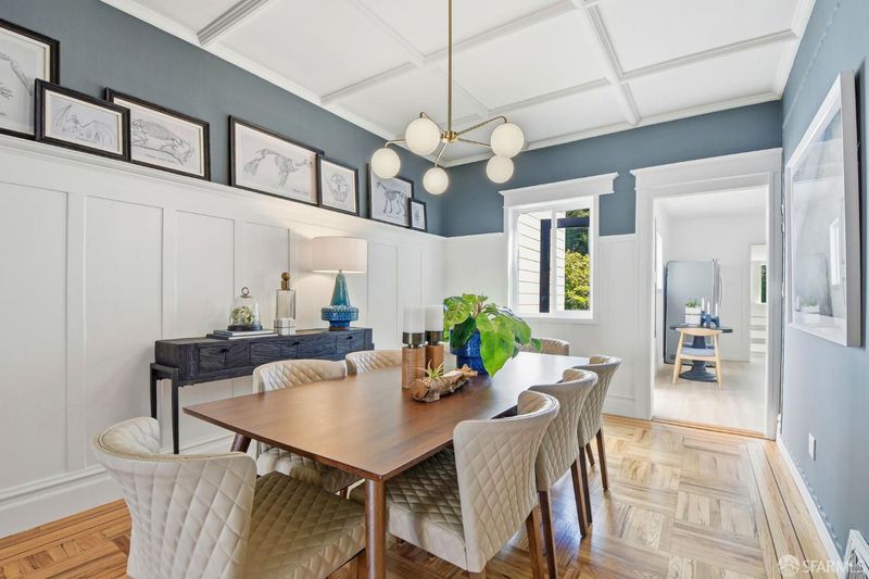 Beautiful 3-bedroom, 2.5-bath single-family home in a coveted Lake Street location. Showcasing timeless San Francisco charm, the main level welcomes you with an inviting living room featuring a decorative fireplace, an elegant formal dining room with box-beam ceilings, and a spacious kitchen with stainless steel appliances. Two comfortable bedrooms and a full bath complete this level. Classic period details including original hardwood floors, picture molding, and wainscoting add warmth and character. Just off the kitchen, a gorgeous deck offers seamless indoor-outdoor living, perfect for relaxing or entertaining. The lower level, extensively upgraded in 2023-2024, adds exceptional versatility with an office, additional bedroom, full and half baths, and a large flex space ideal for a media room, gym, or guest room. Laundry, generous storage, and a two-car garage provide everyday convenience. Step outside to a sunny backyard oasis with fruit trees, raised garden beds and space to entertain. Ideally situated close to Clement Street and the Richmond District's popular restaurants, shops, and markets, this home also offers easy access to the Presidio, Mountain Lake Park, Baker Beach, and Lands End trails. Convenient proximity to Park Presidio and major transit routes ensures a smooth commute. A special opportunity to own a charming home in one of San Francisco's most desirable neighborhoods.