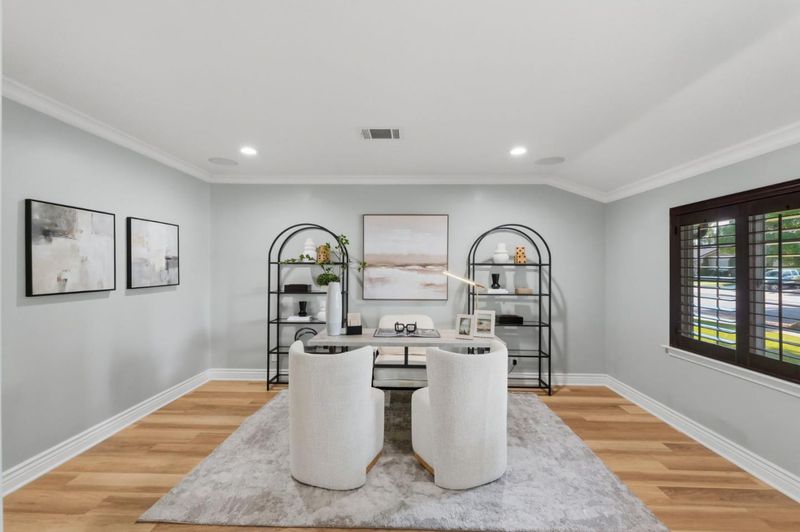 Beautifully updated and truly move-in ready, this Thousand Oaks home at 4276 Lynfield Lane offers an exceptional blend of comfort, style, and convenience in a highly desirable San Jose location. Thoughtfully maintained with custom upgrades, the home features a spacious permitted screened-in room ideal for year-round indoor-outdoor living, fully owned solar panels, Jeld-Wen dual-pane windows, recessed lighting, and elegant crown molding throughout. The well-appointed kitchen showcases granite countertops and ample workspace, while the guest bathroom was tastefully remodeled in 2019. The primary bathroom received a stylish update in 2021, complemented by new flooring, refinished cabinetry, and fresh interior paint. Additional highlights include plantation shutters, a distinctive Mediterranean-style front and garage door, and a fully hardwired setup for security cameras and Wi-Fi, with Ring, Google, and Swann exterior systems in place. Ideally situated near the vibrant shopping, dining, and charm of Willow Glen and Blossom Hill, this home also offers convenient access to major commute routes and is just minutes from parks, local amenities, and approximately 15 minutes to San Jose International Airport, making it an excellent choice for both daily living and long-term value.