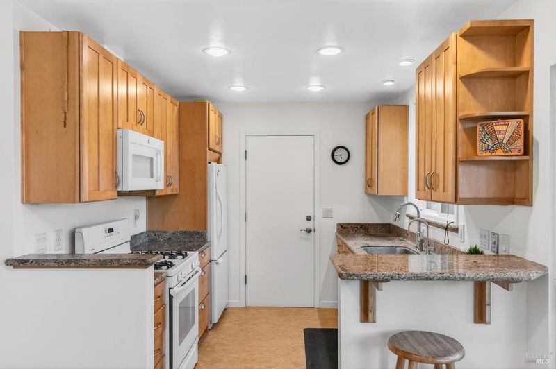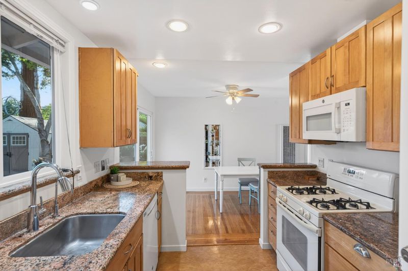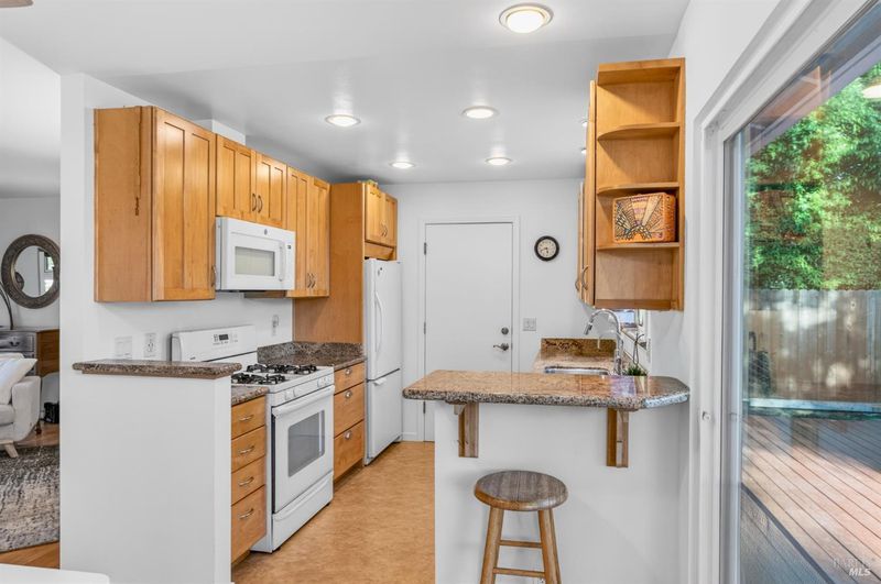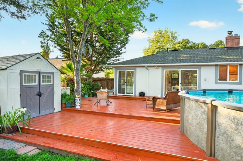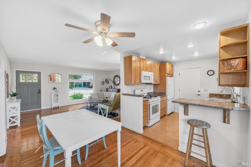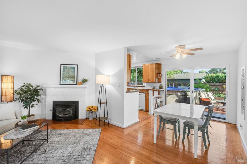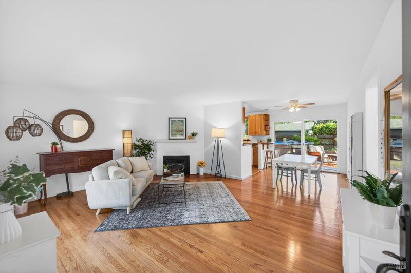 Charm and true pride of ownership shine in this West Side 2-bedroom beauty. Glistening hardwood floors grace the living room and bedrooms, with a huge picture window filling the space with natural light. The spacious living room is centered by a beautiful fireplace, creating a warm and inviting focal point for gatherings or quiet evenings at home. An expanded slider opens to the sunny, spacious and retreat like rear yard with plenty of room for gardening, play, and enjoying long summer days. The sparkling pool is a sweet addition, ideal for BBQs, parties, and making memories. Inside, you'll find an updated kitchen and a remodeled bathroom, making the home truly move-in ready. Lovingly maintained, clean as a whistle, and truly a joy to be around. Complete with an attached one-car garage with laundry, a driveway suitable for 2 cars plus a side area if you have an additional vehicle . All this in a fantastic location just a short walk or bike ride to nearby Carneros Center, Lola's Market, Rory's Bakehouse, and more. This is a special home you won't want to miss!