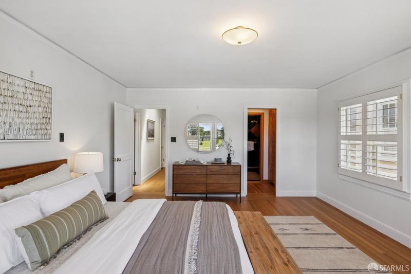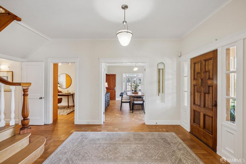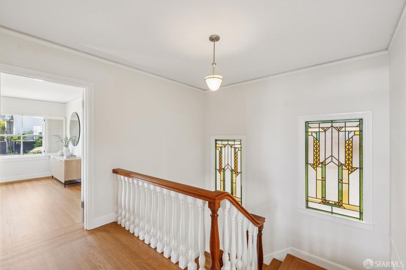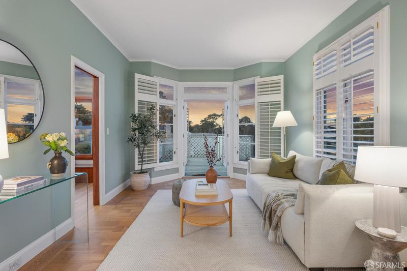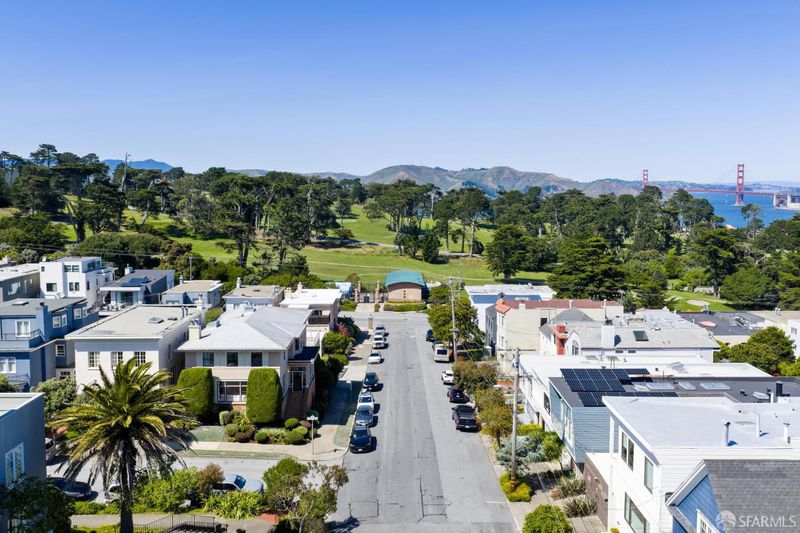 Set in the special enclave of Lincoln Manor, one of the city's coveted residential parks, 2 Shore View is unrivaled in its scale, breathtaking views, and the meticulous care it has received over the years. Homes with such a gracious floor plan seldom become available featuring six bedrooms (with four bedrooms on the upper level) and five and a half bathrooms. The elegant entry foyer showcases a stunning main staircase adorned with custom Frank Lloyd Wright inspired stained glass artfully illuminating the center of the home. The grand living room is enhanced by a fireplace flanked by bespoke bookshelves and the elegant formal dining room leads you to the home's kitchen thoughtfully designed for both functionality and entertaining boasting exquisite wood cabinetry and a layout that facilitates social gatherings alongside effortless meal preparation. Complete with a 6-burner gas range, wood paneled subzero refrigerator, center island with counter seating and wine fridge, plus a charming window seat. The adjacent den provides a comfortable, casual setting ideal for movie nights with access to an expansive deck overlooking Lincoln Park Golf Course and a sliver of a view of the Golden Gate Bridge. Enjoy downtown San Francisco at sunrise and the majestic tree line of Lincoln Park during the golden hour. Ascend the stairway to the bedroom level where you will find two en-suite bedrooms with walk-in closets and radiant floor heating in each bathroom. There are two additional bedrooms that share a jack and jill bathroom and ample closet space for every bedroom and two linen closets off the main hallway. The ground level of the home features a sixth bedroom with en-suite bathroom and an additional half bathroom off the hallway. There is wonderful game room and original bar that opens to the home's charming patio. A detached two car garage and access to a private alley are added bonuses that are included with this special home. Lincoln Manor was built by the S.A. Born Building Company (builders of West Clay Park and Sea Cliff) and abuts Lincoln Park, the Legion of Honor, Land's End, and is close to Sea Cliff and the Balboa Street shopping district. This is a must see once-in-a-generation opportunity!