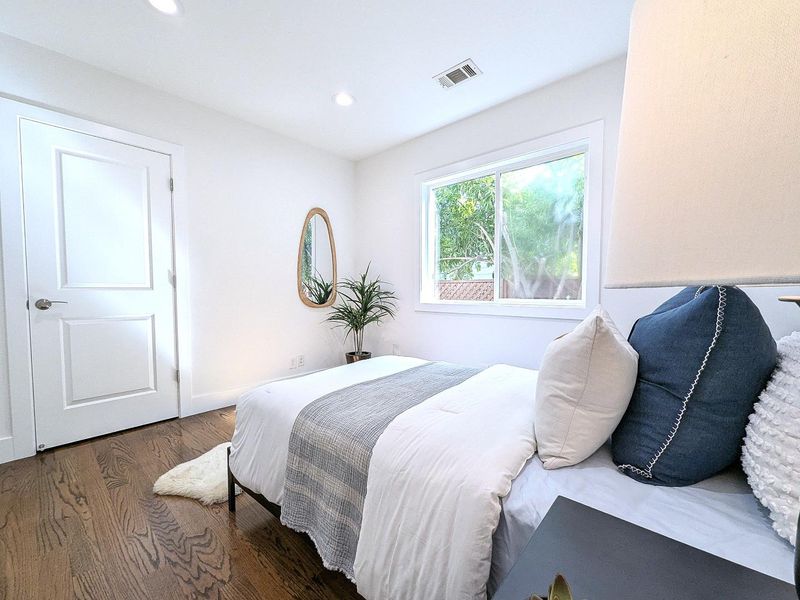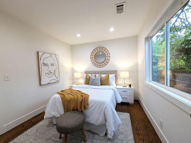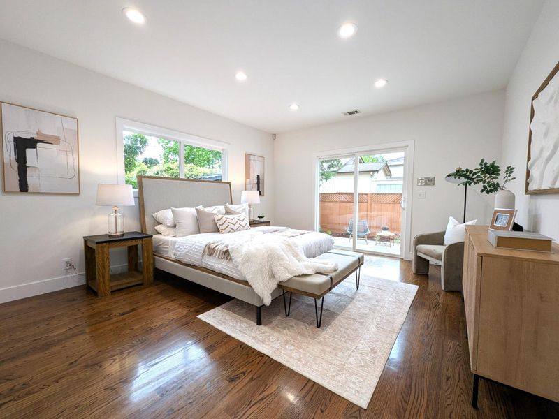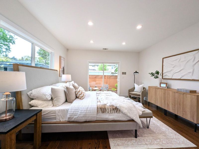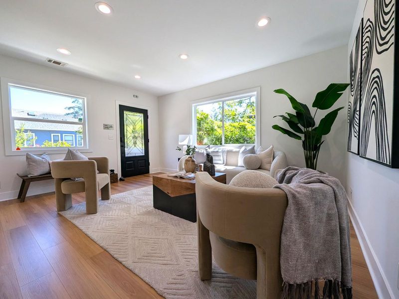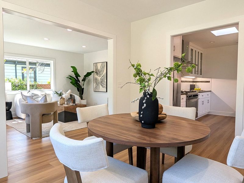 Beautifully remodeled single-level home in the heart of downtown Mountain View! Extensively renovated with a permitted addition in 2013, this residence blends classic charm with modern design and functionality . The thoughtfully designed floor plan offers approximately 1,345 sq ft of living space with 3 bedrooms and 2 bathrooms, filled with natural light throughout . The spacious living and dining areas feature wide-plank flooring, recessed lighting, and a seamless flow ideal for both everyday living and entertaining. The updated kitchen showcases quartz countertops, custom cabinetry, stainless steel appliances, and a skylight that enhances brightness. The private primary suite opens directly to the backyard, creating a true indoor-outdoor connection. Both bathrooms have been tastefully updated with modern finishes. Step outside to a beautifully landscaped yard with a patio area perfect for relaxing or hosting gatherings. A long driveway leads to a detached garage, offering additional parking and flexibility. Situated in a highly walkable neighborhood, this home is just moments from Castro Street dining, shopping, parks, Caltrain, and major Silicon Valley employers . A rare opportunity to own a move-in ready home in one of Mountain Views most desirable downtown locations.