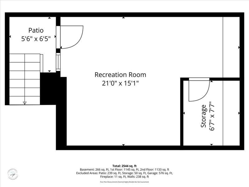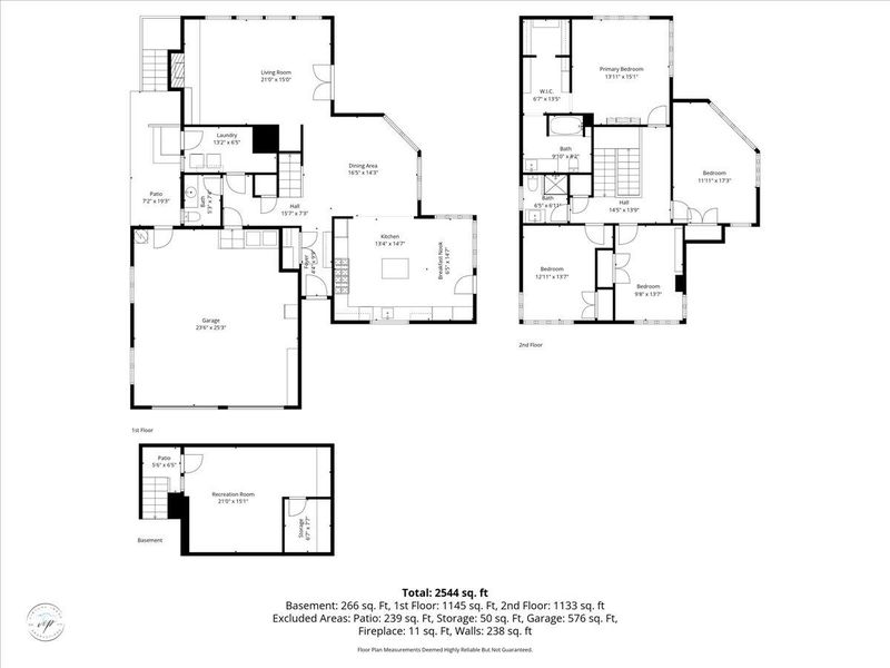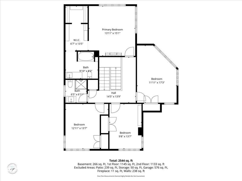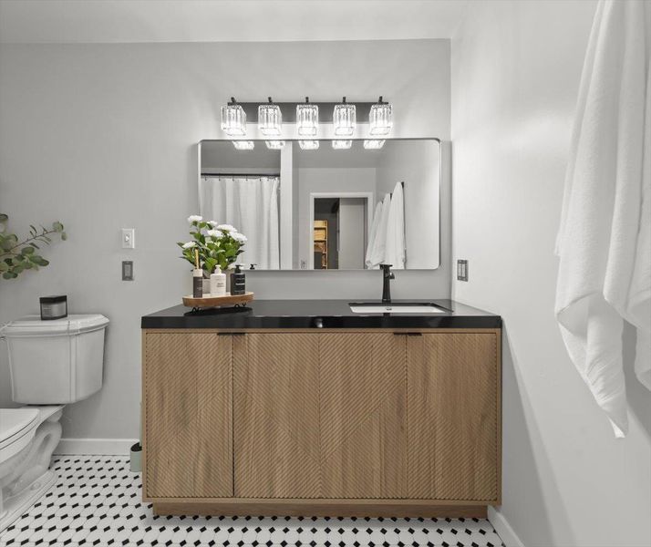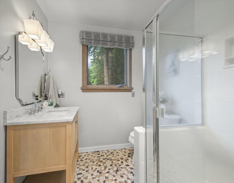 - Double Sinks, Half on Ground Floor, Stall Shower, Tile, Updated Bath