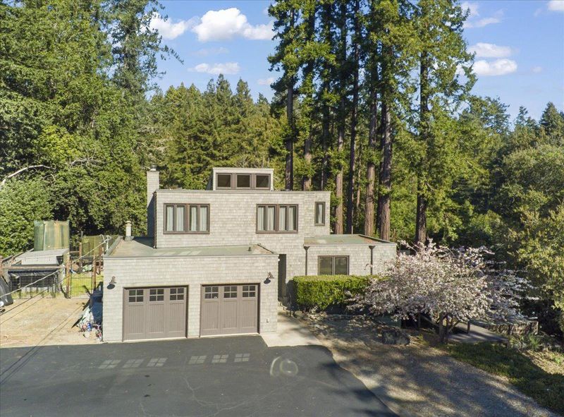 Escape.. to your own private retreat, where luxury meets nature-nestled among serene trees yet just a short drive to Silicon Valley & the coast & close to town. This stunning home is designed for seamless indoor-outdoor living, with expansive windows bring in natural light and bring the beauty of the outdoors in. At the heart of the home, the gourmet kitchen shines with sleek granite countertops, a gourmet Wolf gas range with French top and double ovens, and a spacious pantry, perfect for everything from casual mornings to unforgettable gatherings. Rich hardwood flooring throughout, adding warmth and sophistication to every room. Unwind in the breathtaking living area, where a striking granite-encased fireplace creates a cozy focal point, all set against peaceful, tree-lined views for your perfect backdrop for relaxing evenings. With ample parking for your RV, boat, or multiple vehicles, plus a versatile finished basement ideal for a separate home office, gym, or creative space, this property truly has it all. Experience privacy, luxury, and convenience! This is more than a home, its a lifestyle.