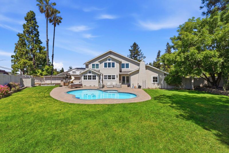 This home features 4 bedrooms and 2.5 bathrooms situated on a huge corner lot with a 2-car garage. The interior boasts an amazing great room and a chefs kitchen fully equipped with a fridge, double oven, wine fridge, dishwasher, and microwave. The space is perfect for indoor entertainment, featuring a breakfast bar, dining room, and family room. Additionally, there is a spacious master suite with two closets and a private enclosed patio, as well as large bedrooms with walk-in closets and a versatile attic space. The outdoor amenities are equally impressive, including a backyard with a built-in BBQ, fire pit, pool and spa, play structure, large lawn, and an edible garden with fruit-bearing trees. The home is also updated with central air and heat, a whole house fan, double pane windows, solar panels, and a Level 2 EV charger. Located in a prime area, the property offers easy access to shopping, restaurants, and freeways, and is within walking distance to Harker Lower. It is also served by excellent schools, including Baker Elementary, Moreland Middle, and Prospect High School.